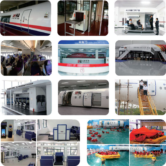 中航未来航空实训基地拥有设施齐全、理念先进的民航专业空实训基地,实训基地按照中国民航总局《公共航空交通运输承运人运行合格审定规则》(CCAR-121FS)中的相关规定和要求进行设计,具备学员学习所需的多机型、多科目、多功能训练相关设备,同时实训基地配置空客A320-200真机,该机适用于航空服务类多专业体验、实训,满足客舱服务实训、头等舱服务实训、客舱应急实训等多门类实训课程。实训基地还包含地面安检、值机、票务、咨询、VIP等多岗位实训教学设施设备。实训基地是中国民航科普教育基地、中国交通运输协会民航服务与管理专业技能实训基地、中国成人教育协会航空服务教育培训专业委员会副理事长单位,国内首家将航空高等职业教育与民航岗位技能培训相结合的专业教育培训机构。